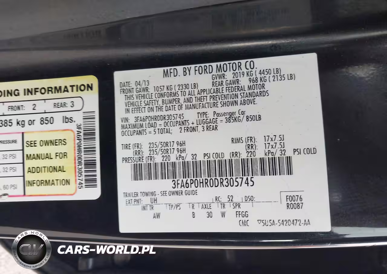 IAAI Nr: I-44687273 VIN: 3FA6P0HR0DR305745 Port: Elizabeth, NJ