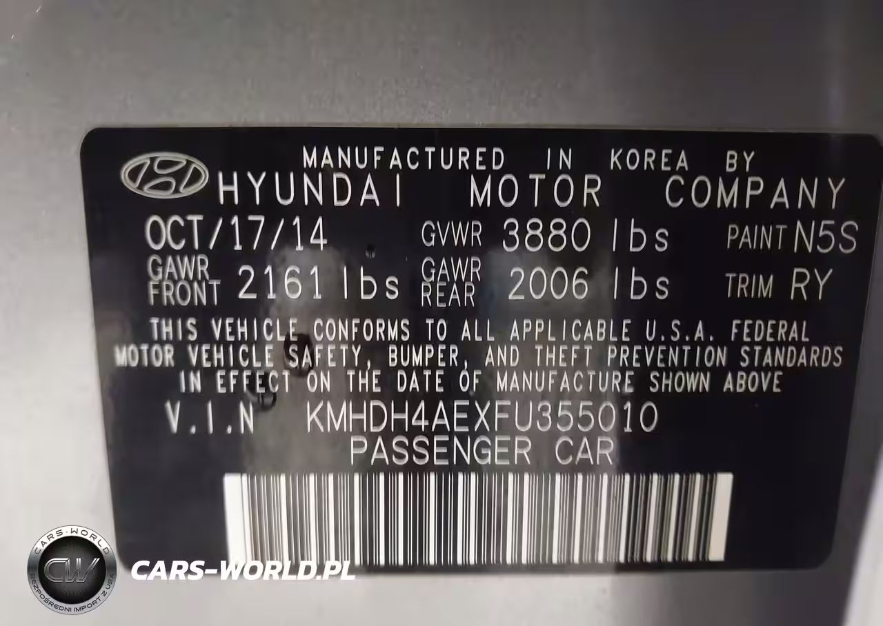 IAAI Nr: I-44687518 VIN: KMHDH4AEXFU355010 Port: Elizabeth, NJ