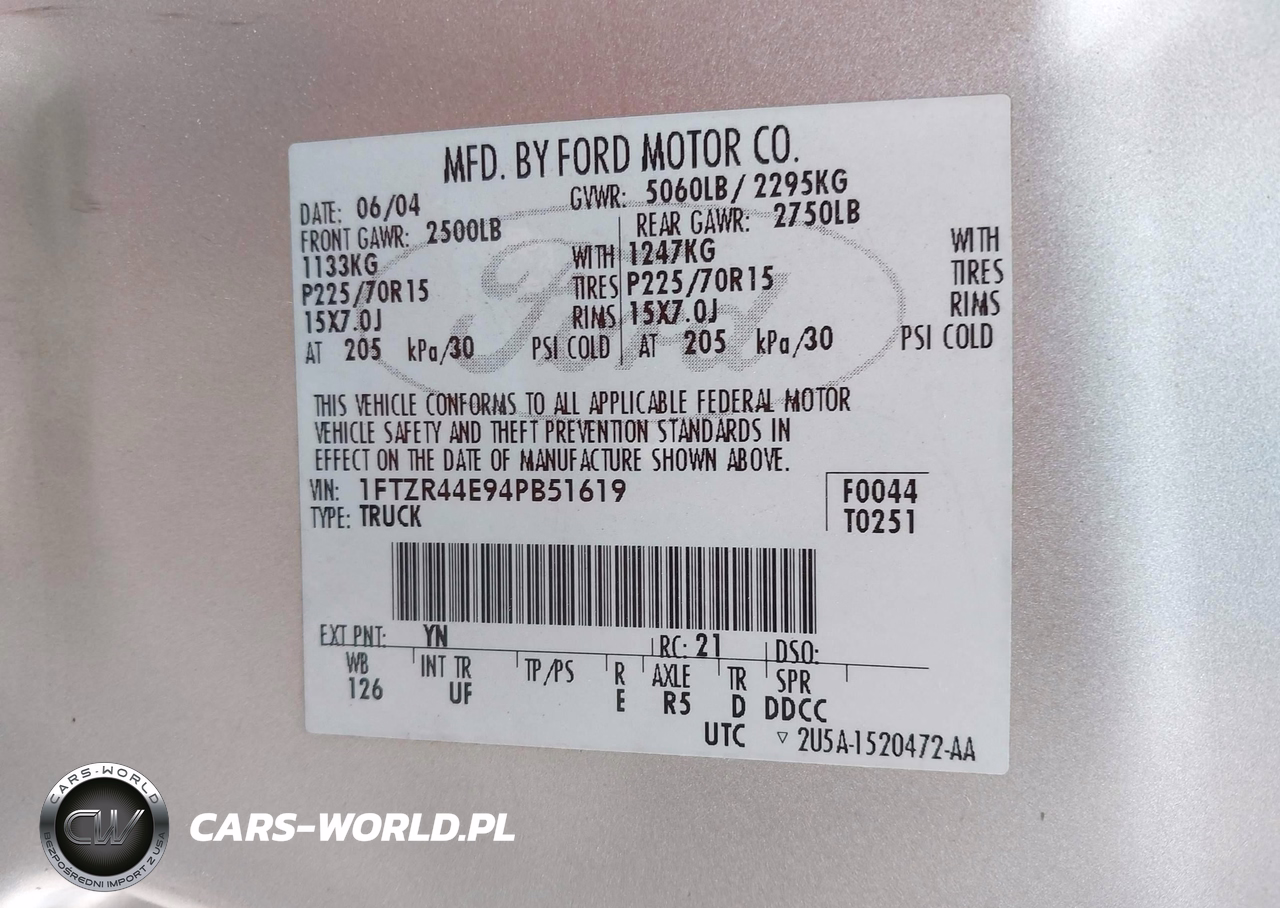 IAAI Nr: I-44687971 VIN: 1FTZR44E94PB51619 Port: Savannah, GA