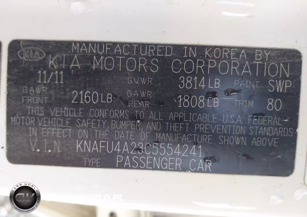 IAAI Nr: I-44687982 VIN: KNAFU4A23C5554241 Port: Savannah, GA