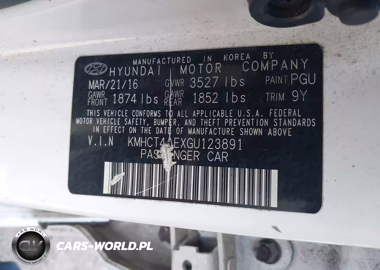 IAAI Nr: I-44688294 VIN: KMHCT4AEXGU123891 Port: Elizabeth, NJ