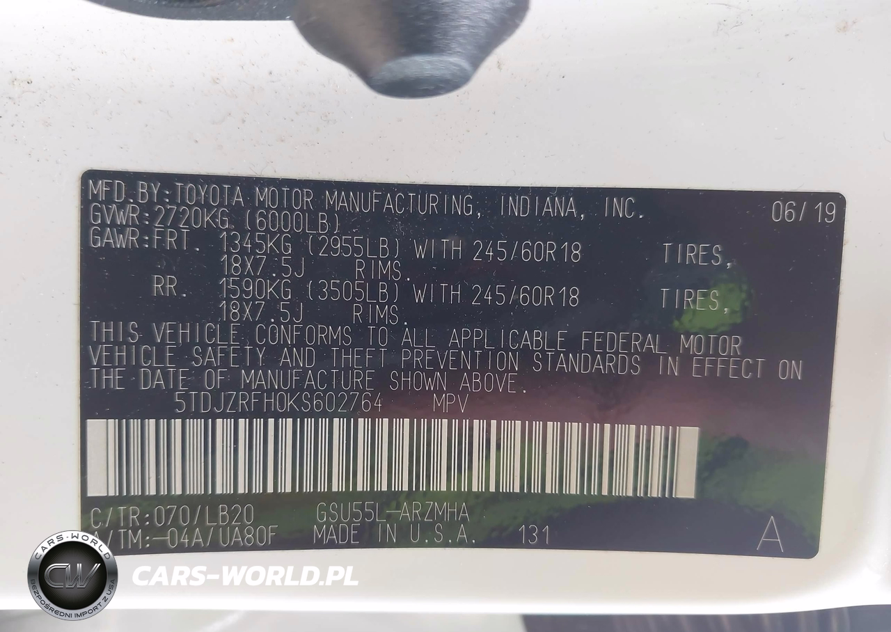 IAAI Nr: I-44688477 VIN: 5TDJZRFH0KS602764 Port: Indianapolis, IN