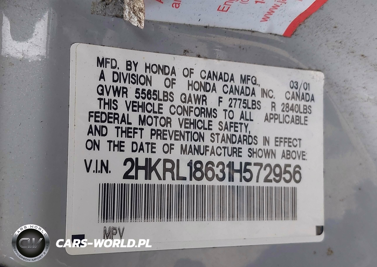 IAAI Nr: I-44688738 VIN: 2HKRL18631H572956 Port: Elizabeth, NJ