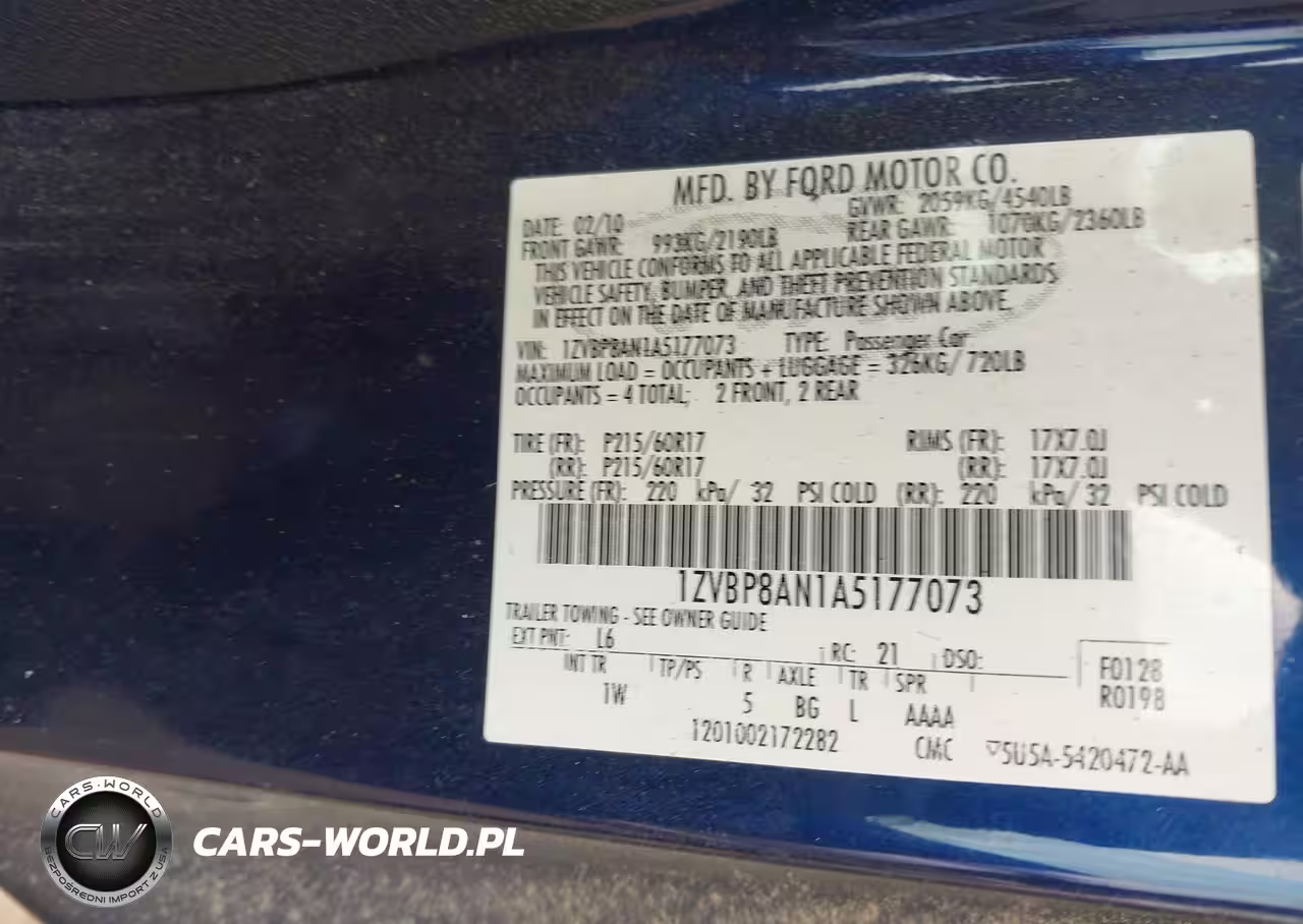 IAAI Nr: I-44688807 VIN: 1ZVBP8AN1A5177073 Port: Savannah, GA