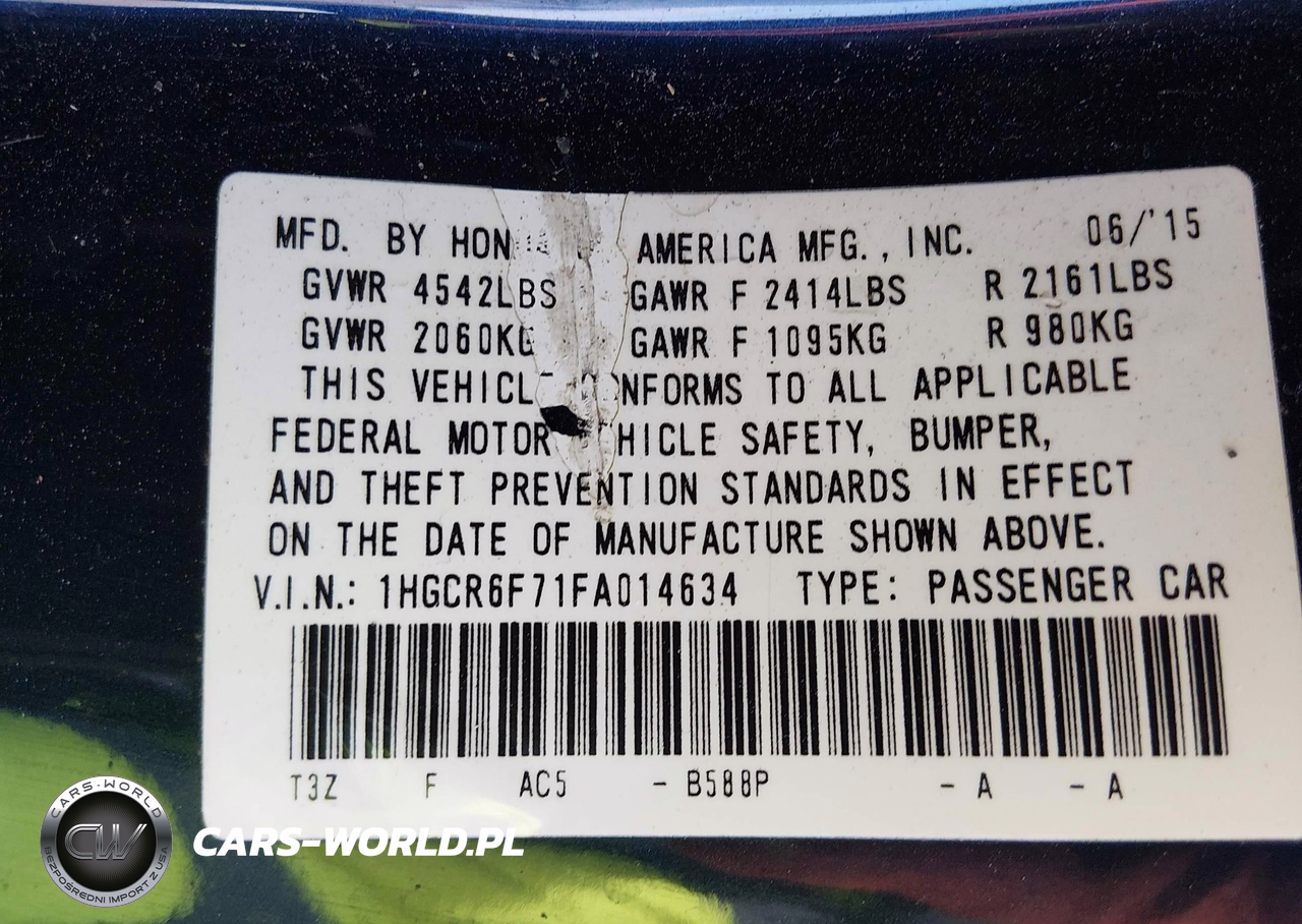 IAAI Nr: I-44689214 VIN: 1HGCR6F71FA014634 Port: Houston, TX