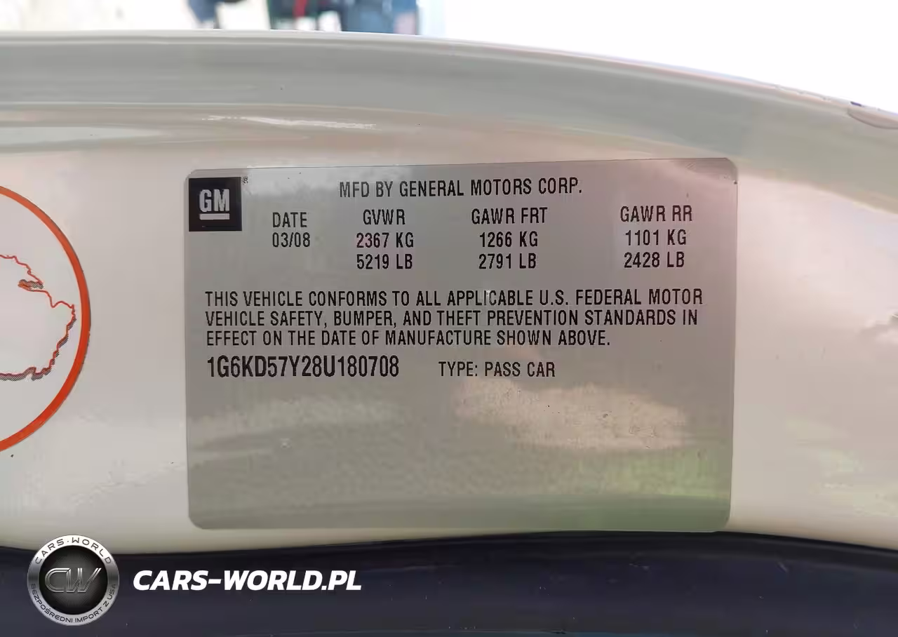 IAAI Nr: I-44689285 VIN: 1G6KD57Y28U180708 Port: Houston, TX