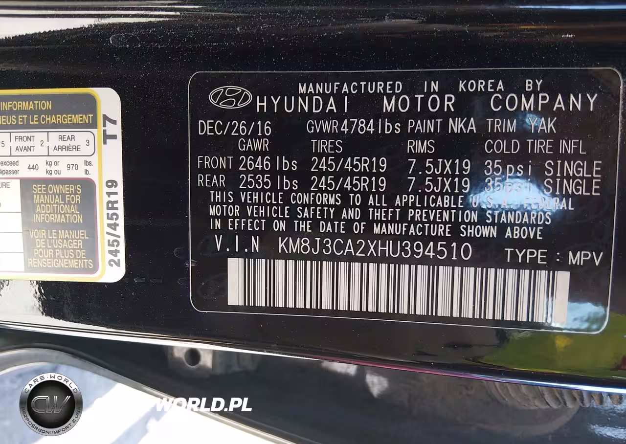 IAAI Nr: I-44689549 VIN: KM8J3CA2XHU394510 Port: Los Angeles, CA
