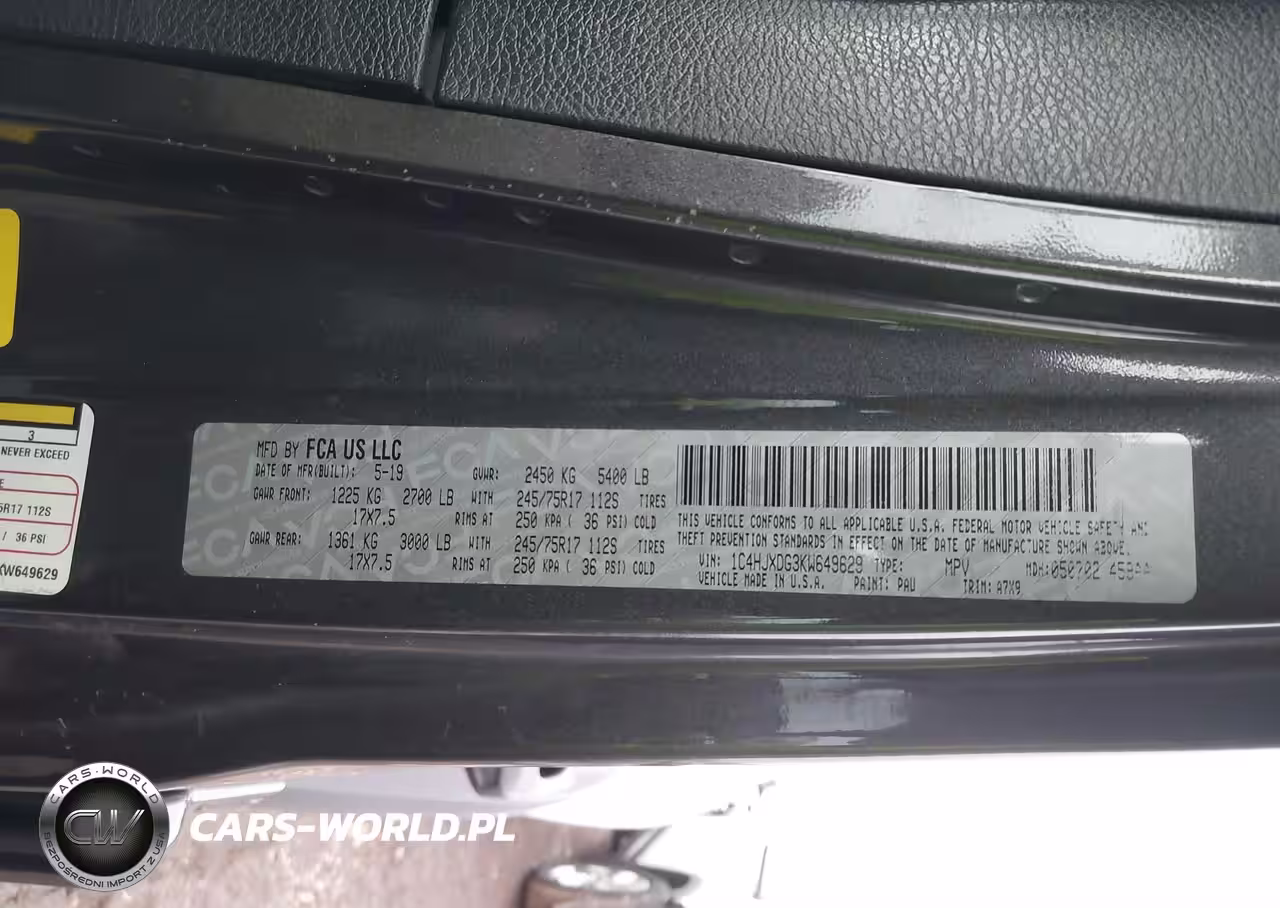 IAAI Nr: I-44689897 VIN: 1C4HJXDG3KW649629 Port: Indianapolis, IN