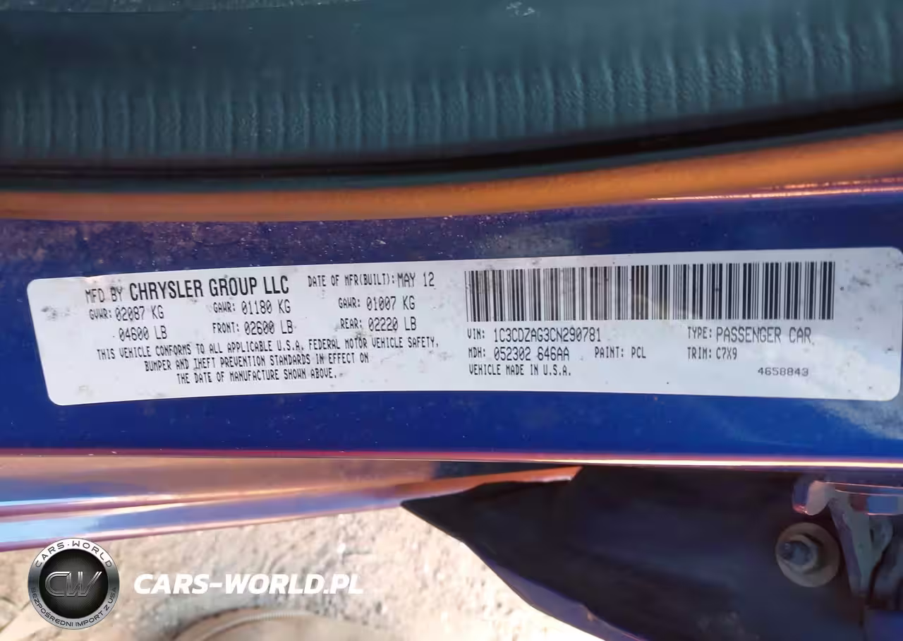 IAAI Nr: I-44690554 VIN: 1C3CDZAG3CN290781 Port: Savannah, GA
