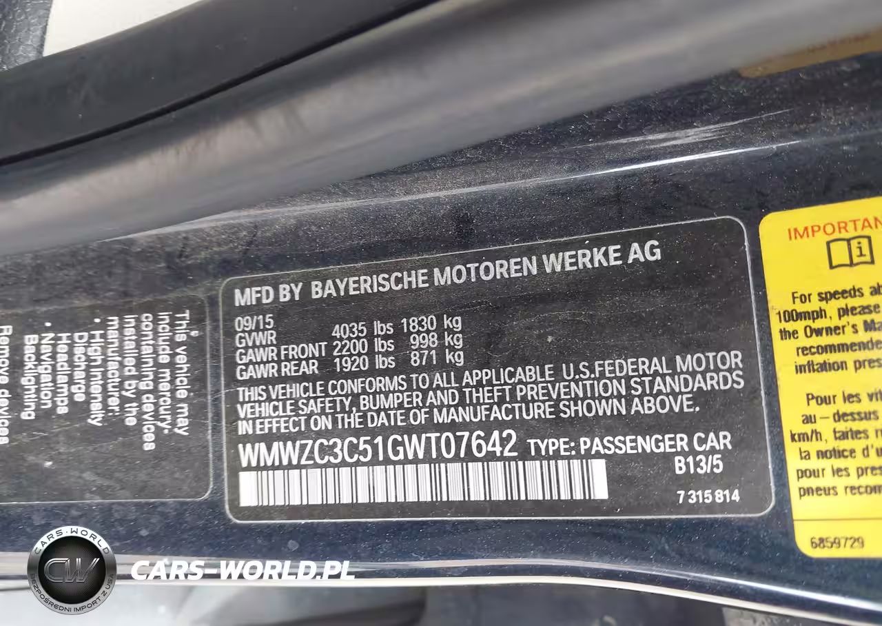 IAAI Nr: I-44690557 VIN: WMWZC3C51GWT07642 Port: Houston, TX