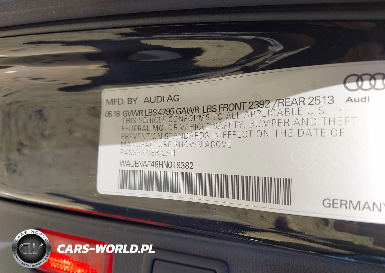 IAAI Nr: I-44690645 VIN: WAUENAF48HN019382 Port: Elizabeth, NJ