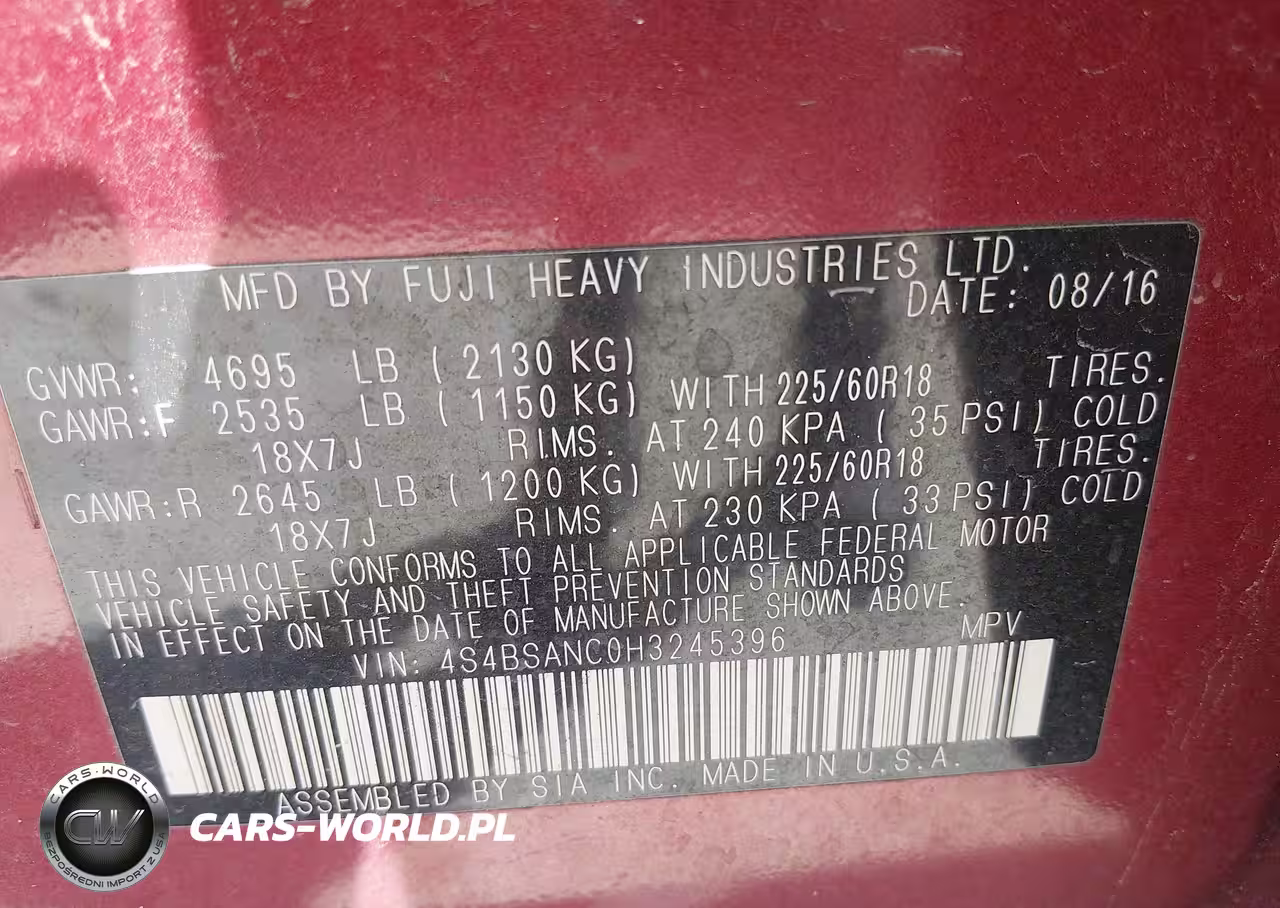 IAAI Nr: I-44690896 VIN: 4S4BSANC0H3245396 Port: Houston, TX