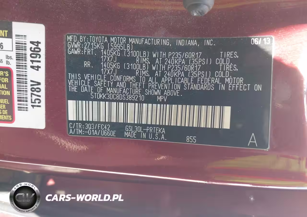 IAAI Nr: I-44691184 VIN: 5TDKK3DC8DS389210 Port: Savannah, GA