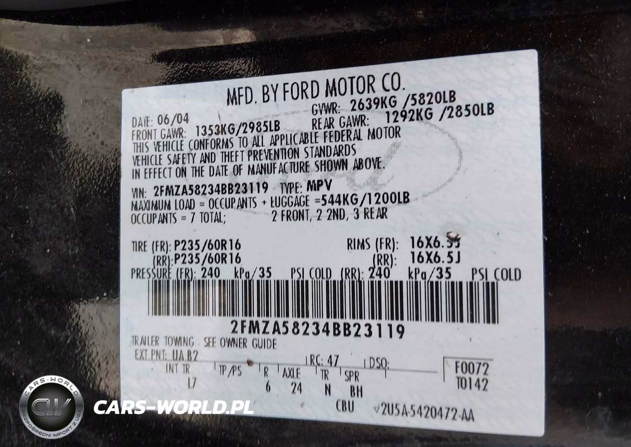 IAAI Nr: I-44691814 VIN: 2FMZA58234BB23119 Port: Indianapolis, IN