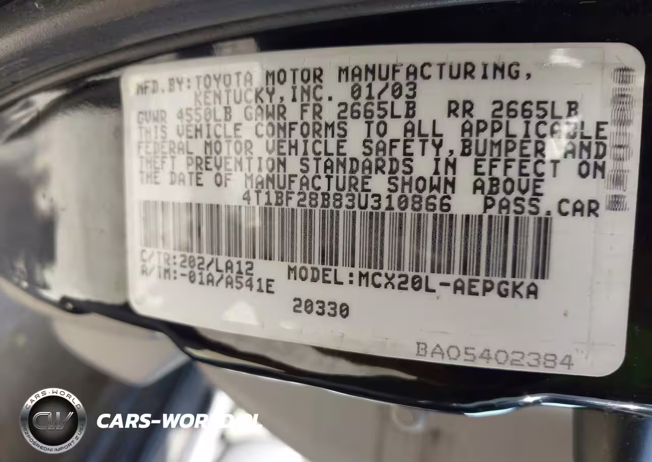 IAAI Nr: I-44692180 VIN: 4T1BF28B83U310866 Port: Los Angeles, CA