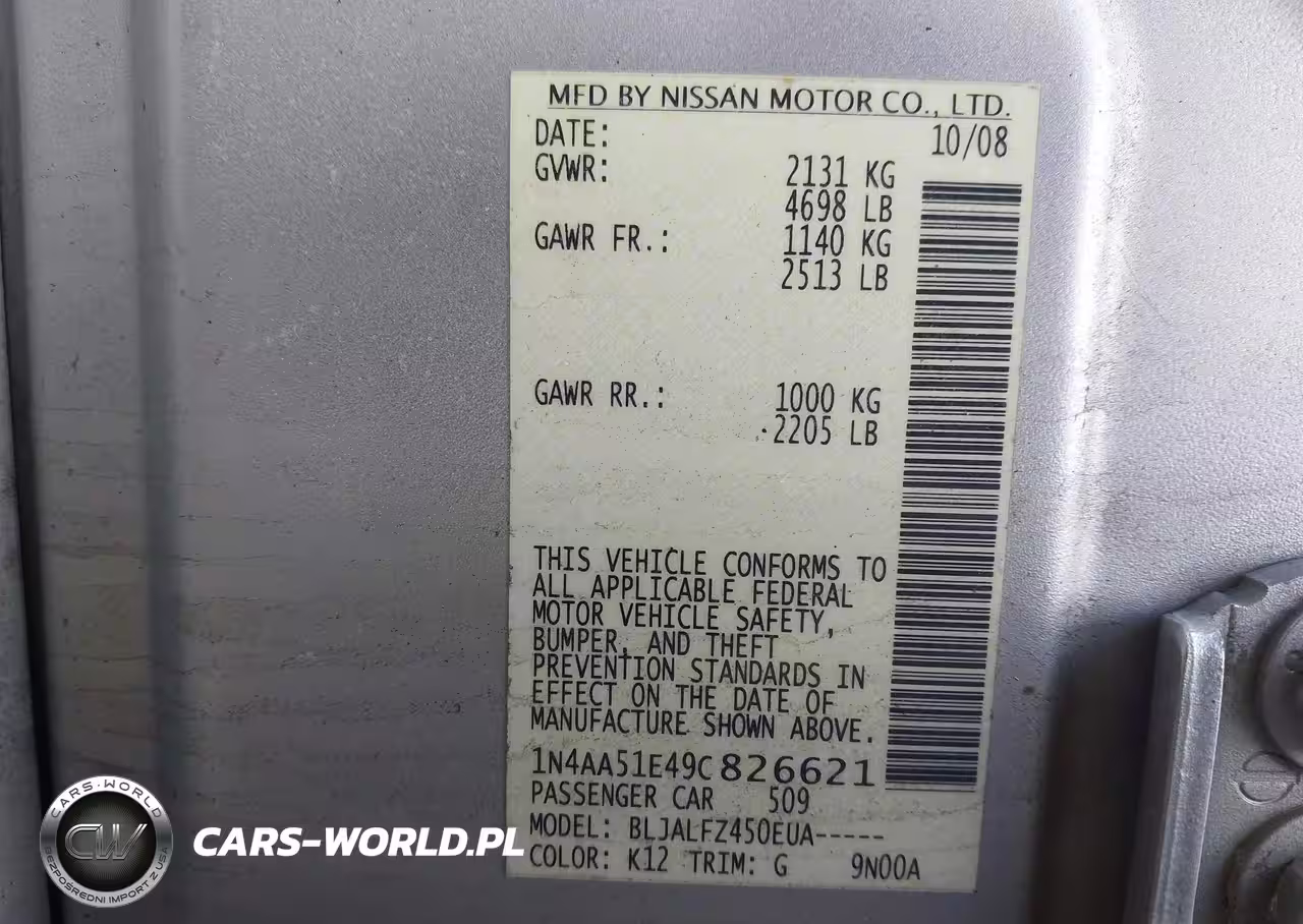 IAAI Nr: I-44692702 VIN: 1N4AA51E49C826621 Port: Elizabeth, NJ
