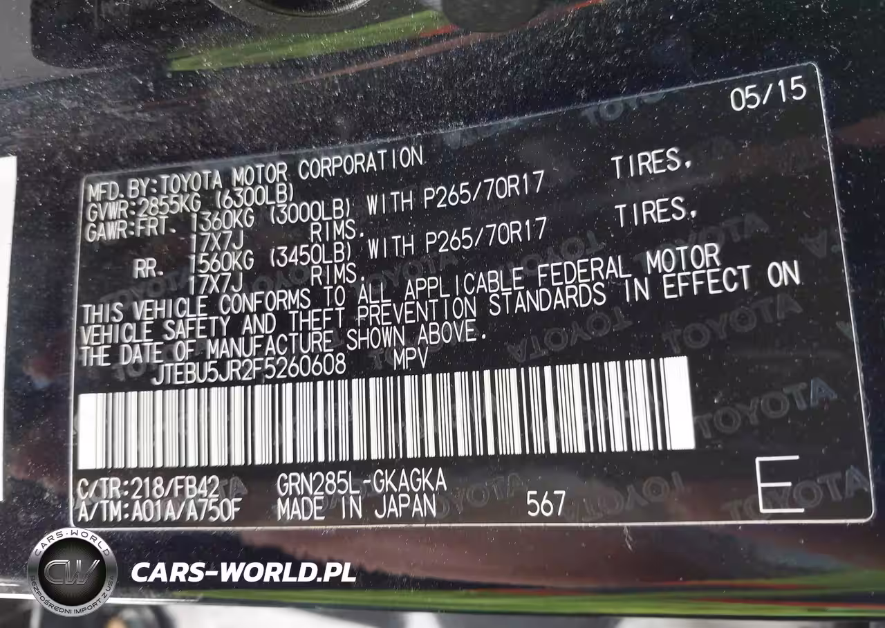 IAAI Nr: I-44692724 VIN: JTEBU5JR2F5260608 Port: Indianapolis, IN