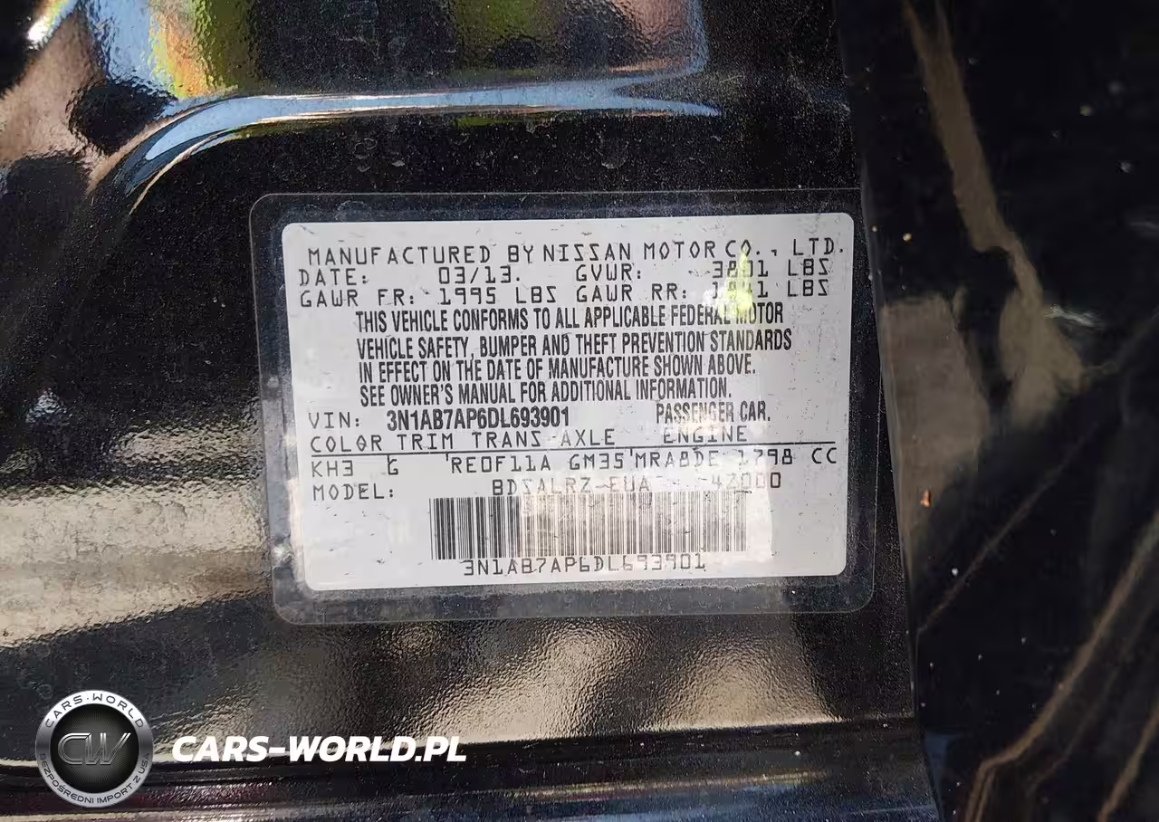 IAAI Nr: I-44693375 VIN: 3N1AB7AP6DL693901 Port: Savannah, GA