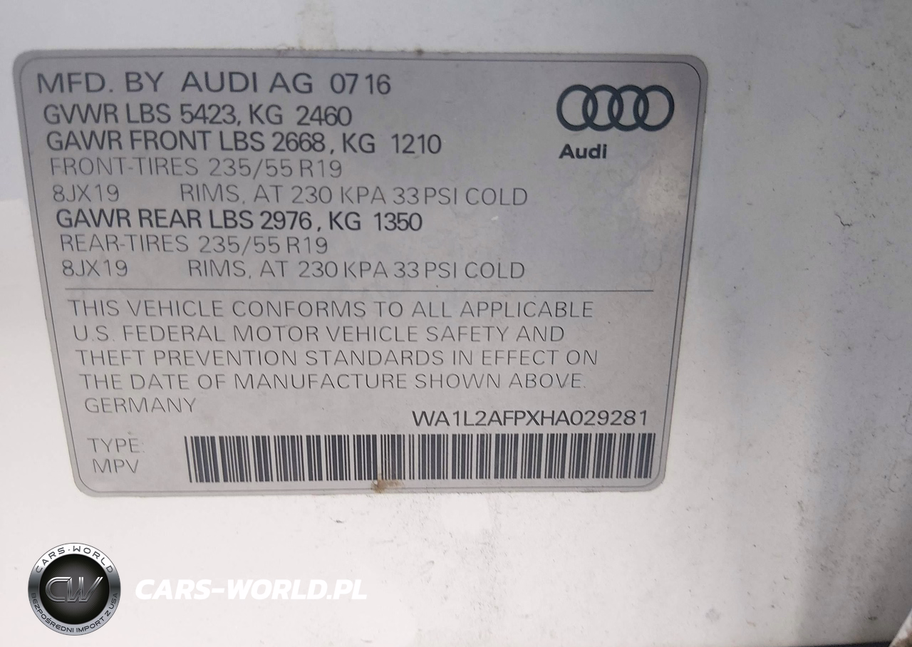 IAAI Nr: I-44693704 VIN: WA1L2AFPXHA029281 Port: Savannah, GA