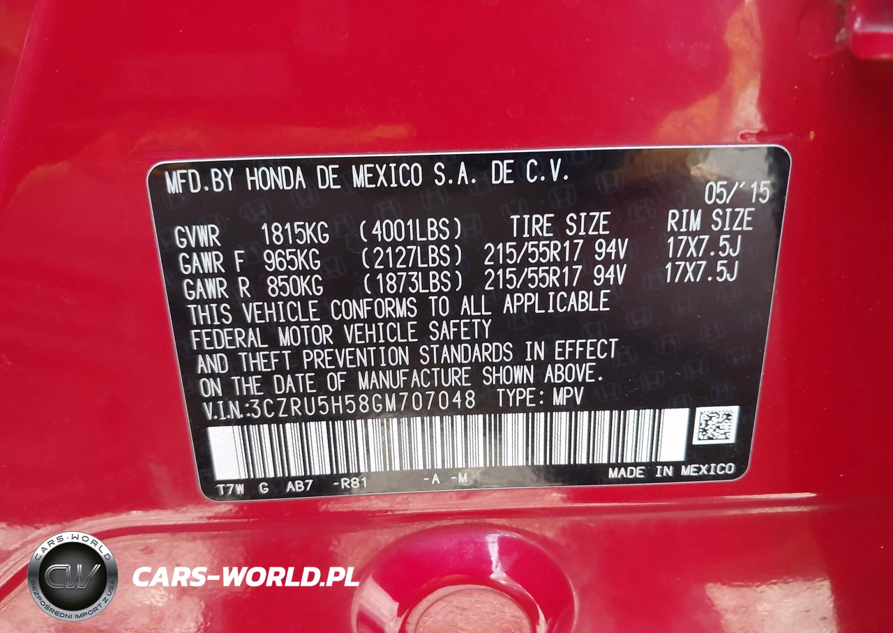 IAAI Nr: I-44694622 VIN: 3CZRU5H58GM707048 Port: Savannah, GA