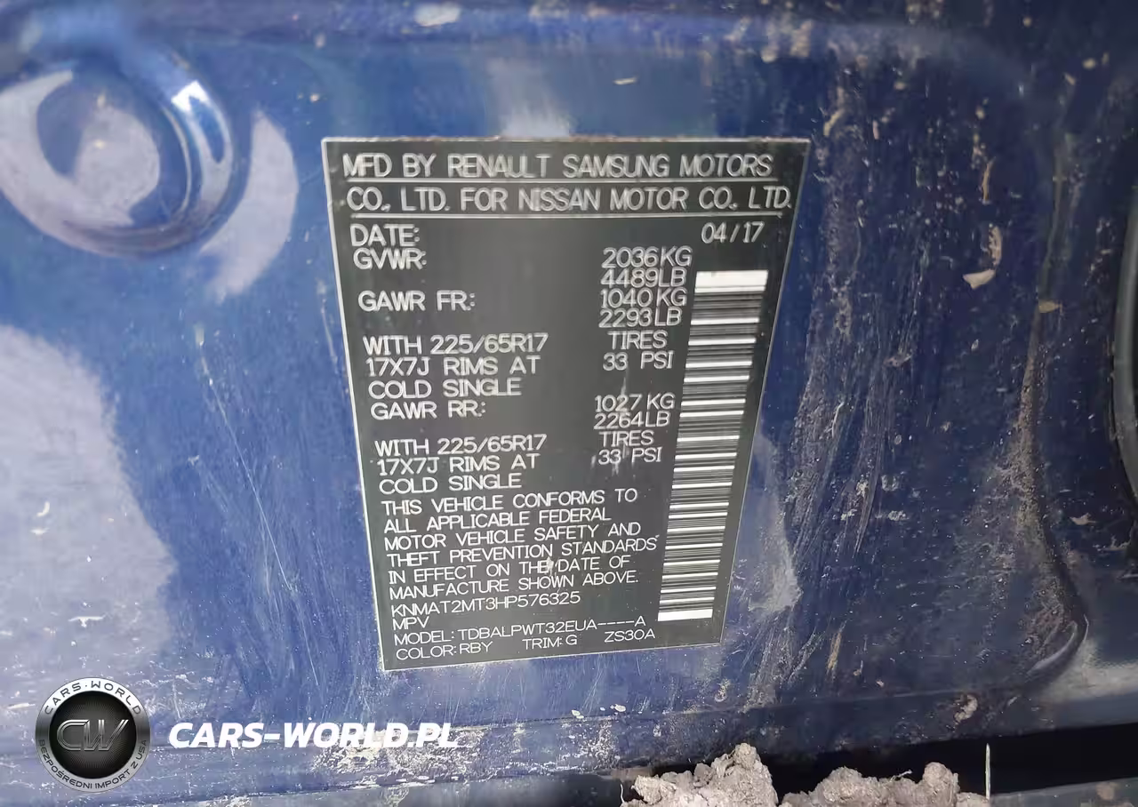 IAAI Nr: I-44694778 VIN: KNMAT2MT3HP576325 Port: Elizabeth, NJ