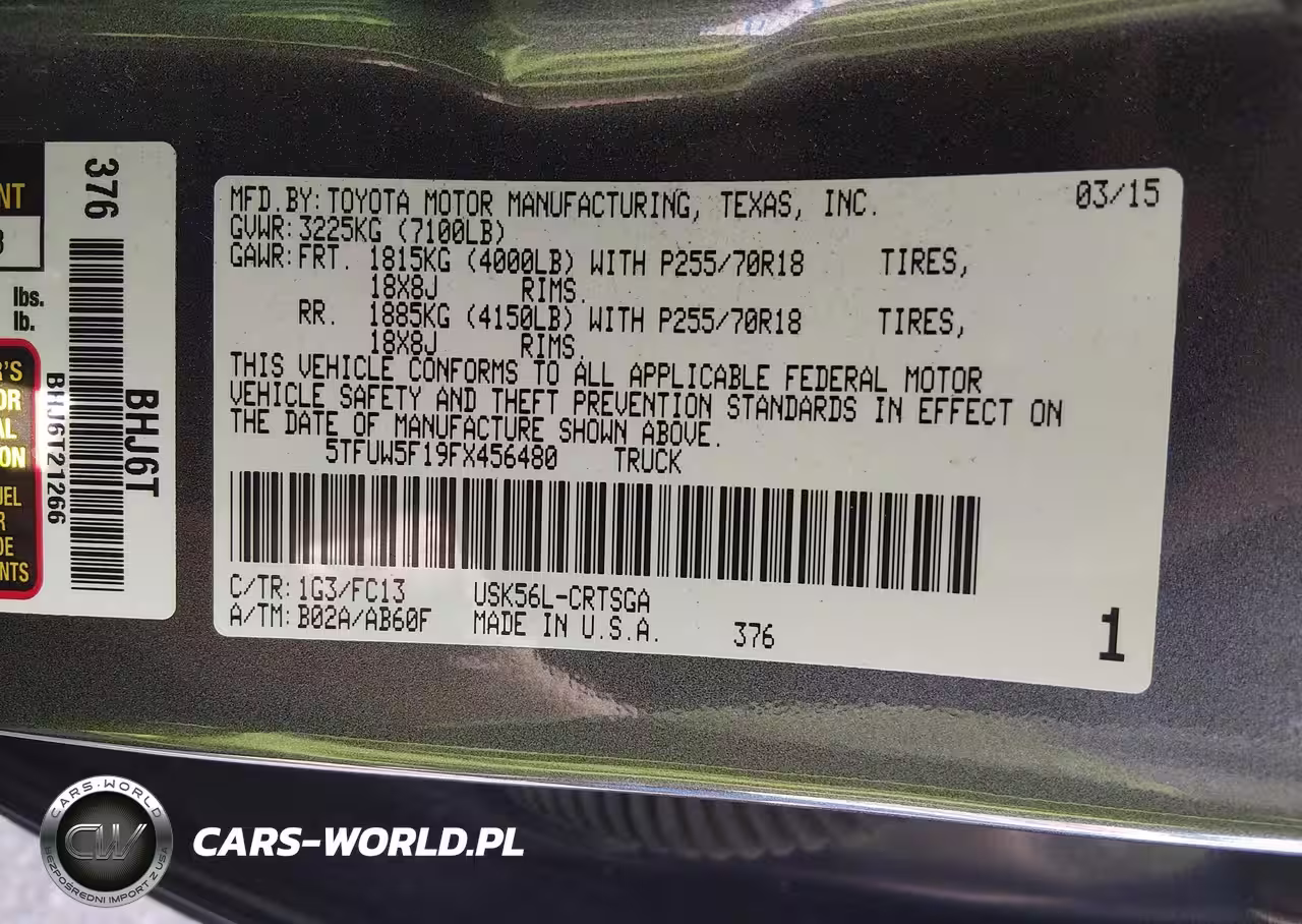 IAAI Nr: I-44695410 VIN: 5TFUW5F19FX456480 Port: Indianapolis, IN