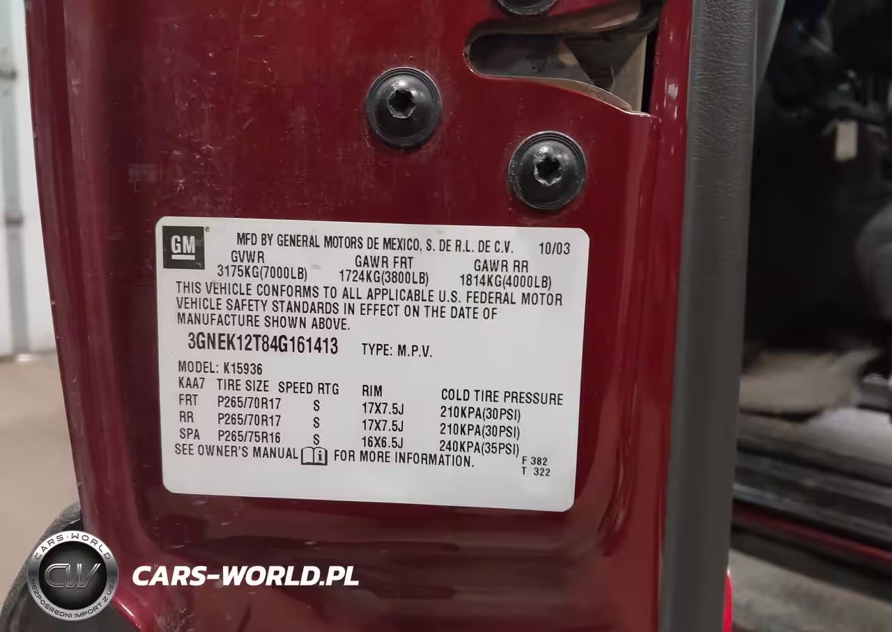 IAAI Nr: I-44695562 VIN: 3GNEK12T84G161413 Port: Indianapolis, IN