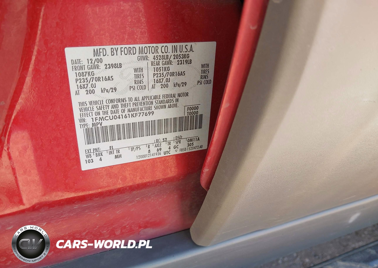 IAAI Nr: I-44695651 VIN: 1FMCU04161KF77699 Port: Houston, TX
