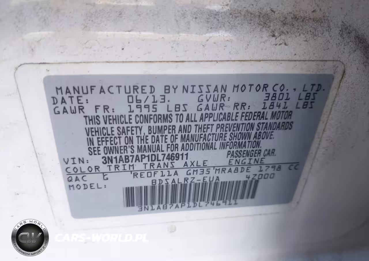 IAAI Nr: I-44695827 VIN: 3N1AB7AP1DL746911 Port: Savannah, GA