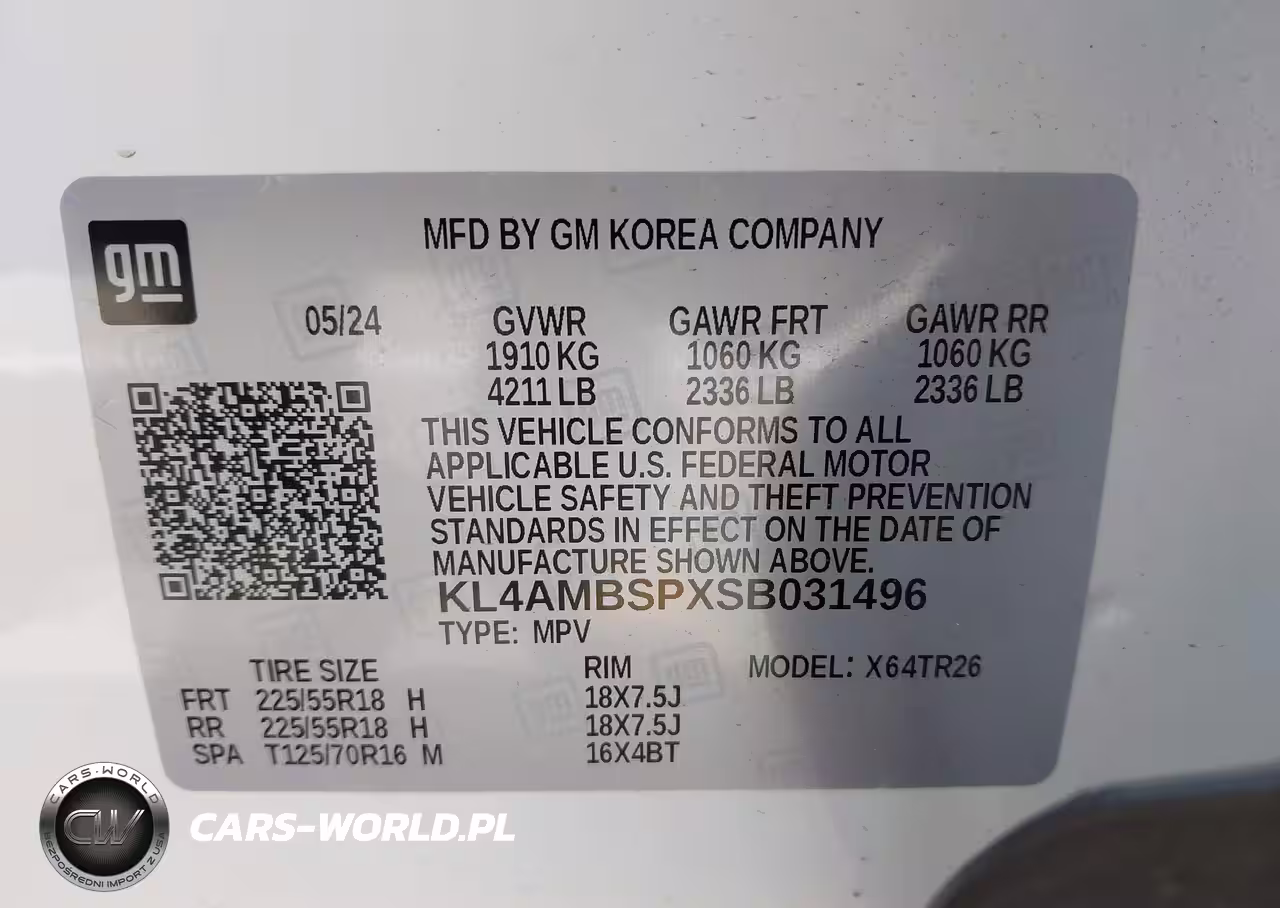 IAAI Nr: I-44695868 VIN: KL4AMBSPXSB031496 Port: Savannah, GA