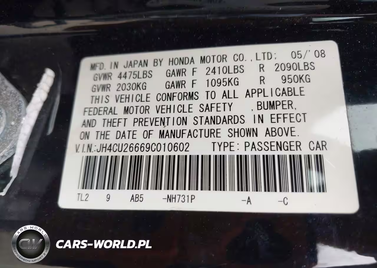 IAAI Nr: I-44696168 VIN: JH4CU26669C010602 Port: Houston, TX