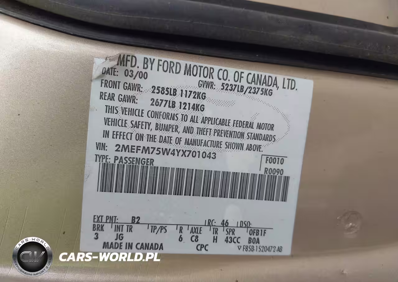 IAAI Nr: I-44696883 VIN: 2MEFM75W4YX701043 Port: Indianapolis, IN