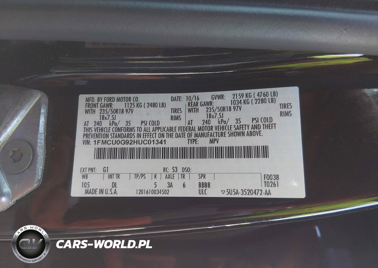 IAAI Nr: I-44697130 VIN: 1FMCU0G92HUC01341 Port: Savannah, GA