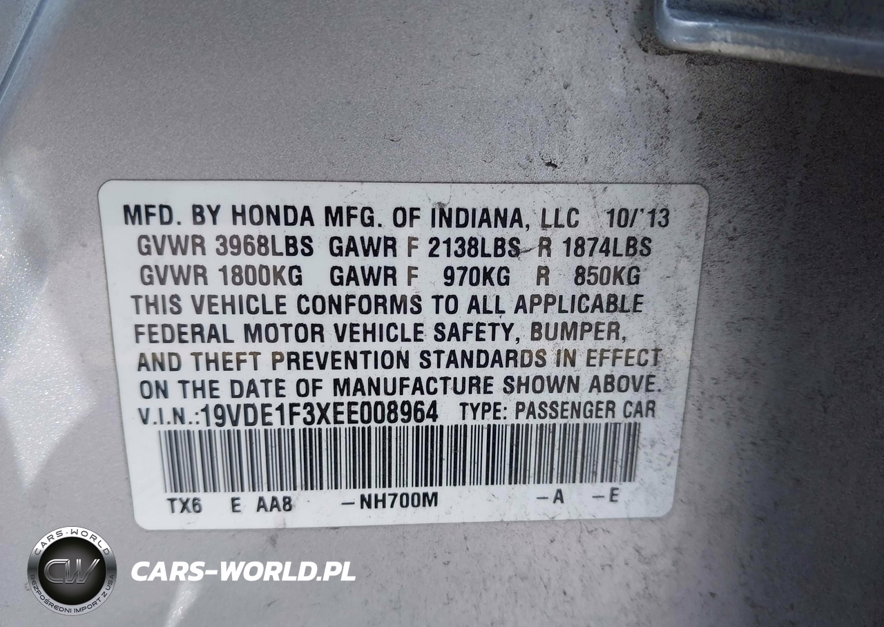 IAAI Nr: I-44697197 VIN: 19VDE1F3XEE008964 Port: Savannah, GA