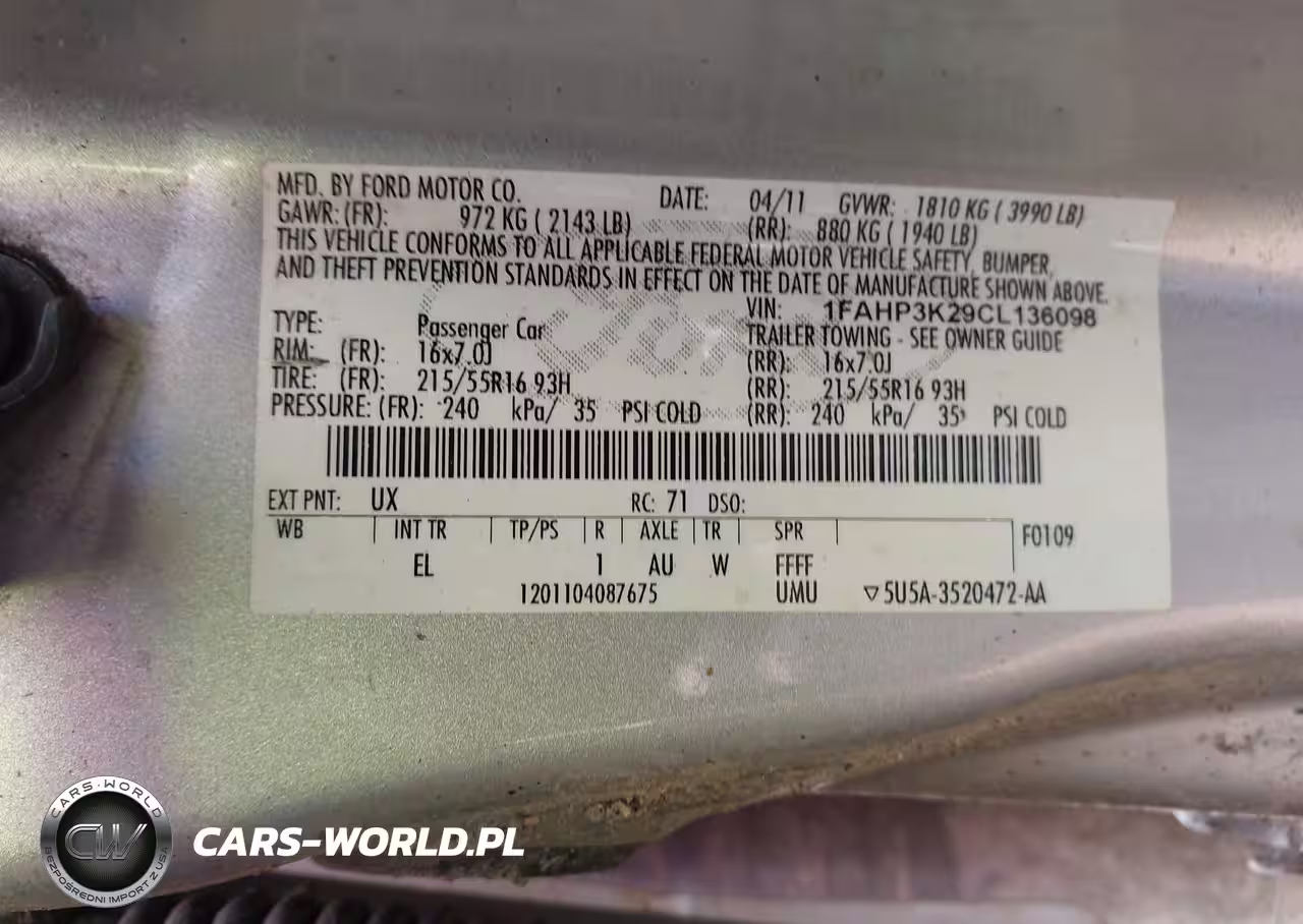 IAAI Nr: I-44697364 VIN: 1FAHP3K29CL136098 Port: Indianapolis, IN
