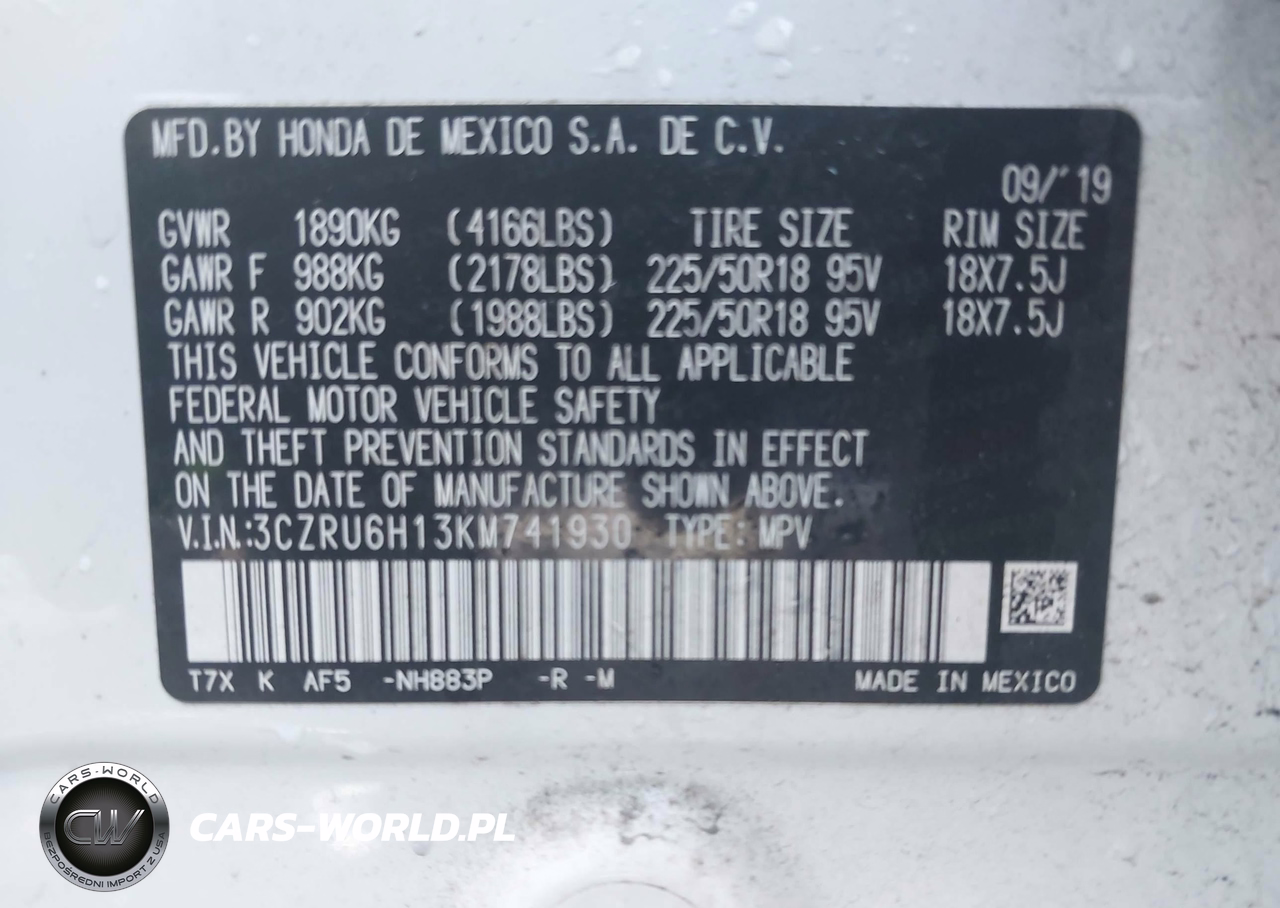 IAAI Nr: I-44697423 VIN: 3CZRU6H13KM741930 Port: Savannah, GA