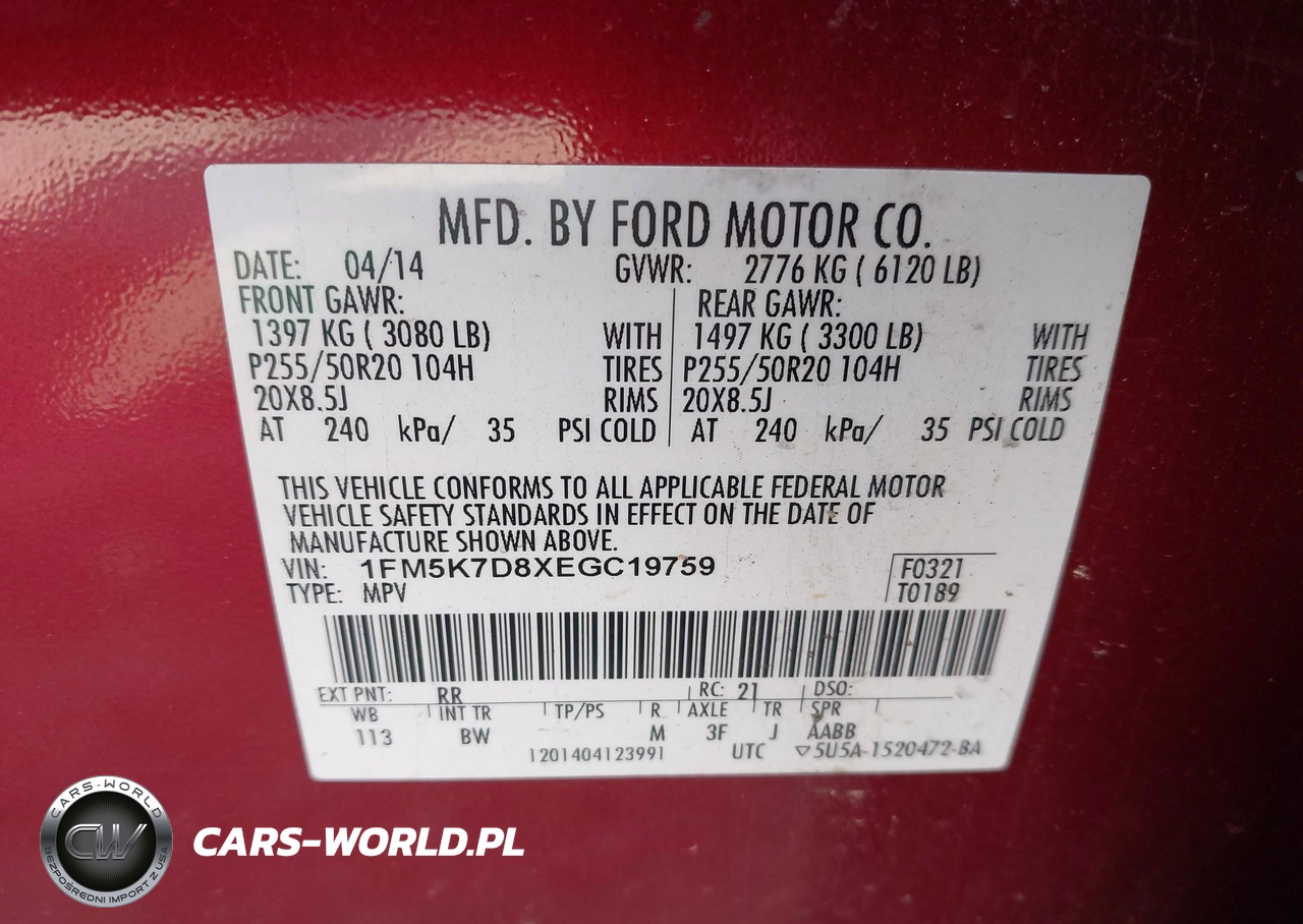 IAAI Nr: I-44697441 VIN: 1FM5K7D8XEGC19759 Port: Savannah, GA
