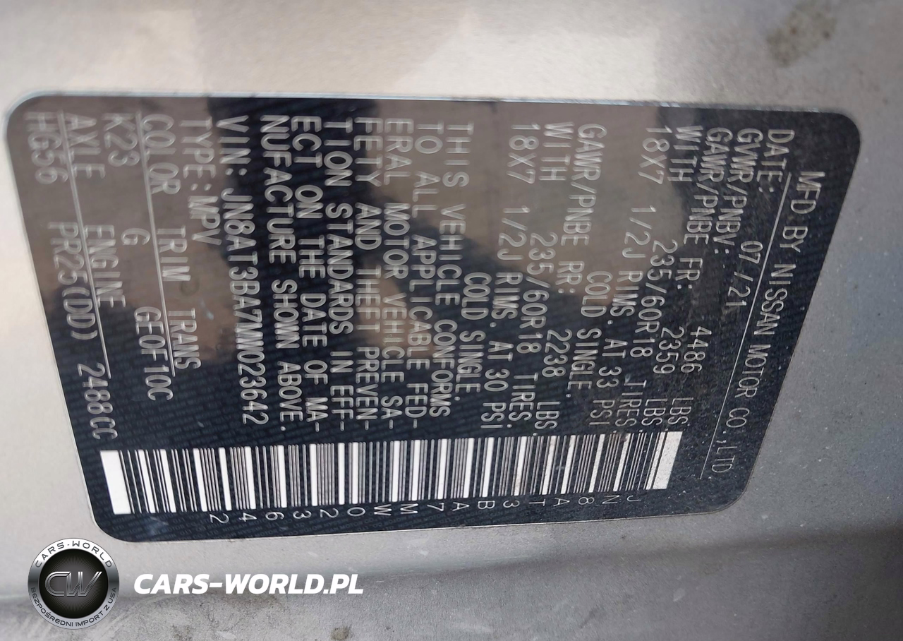 IAAI Nr: I-44697869 VIN: JN8AT3BA7MW023642 Port: Savannah, GA