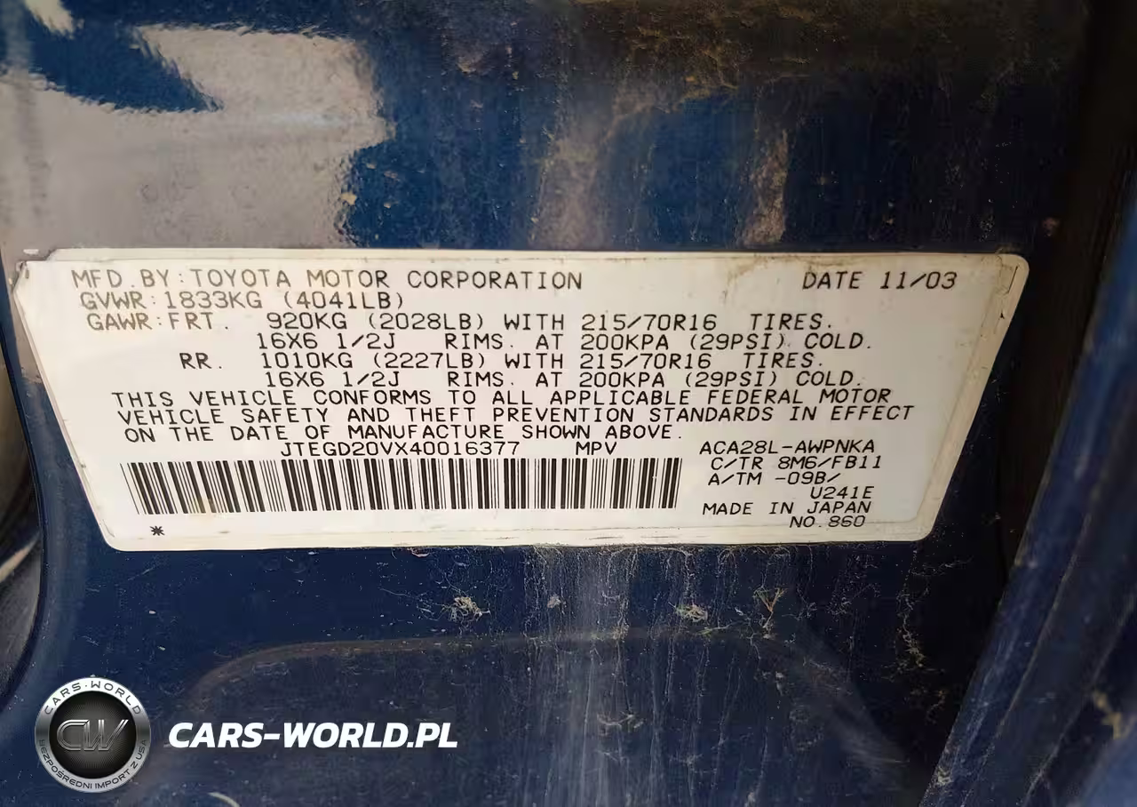 IAAI Nr: I-44698262 VIN: JTEGD20VX40016377 Port: Los Angeles, CA