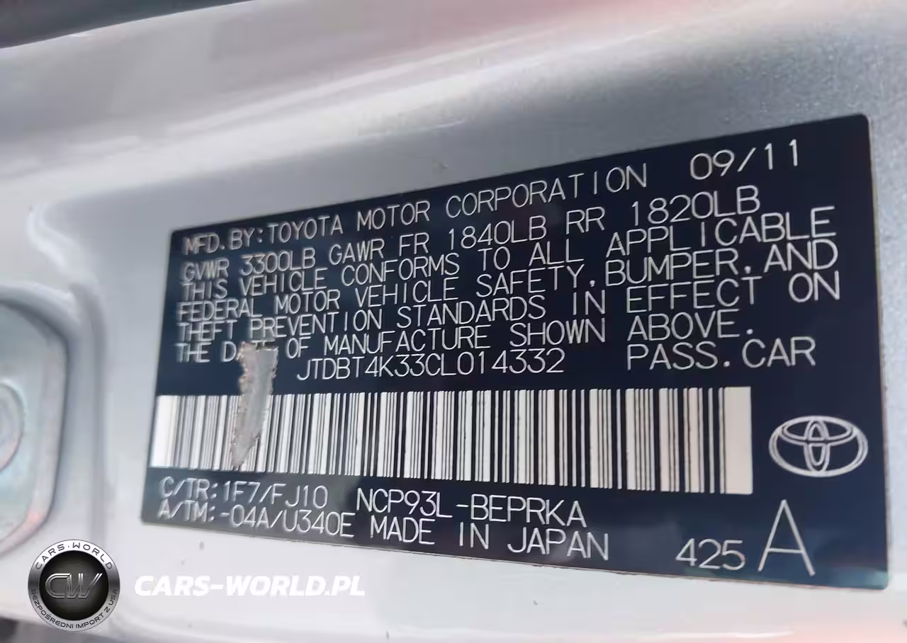 IAAI Nr: I-44698365 VIN: JTDBT4K33CL014332 Port: Houston, TX