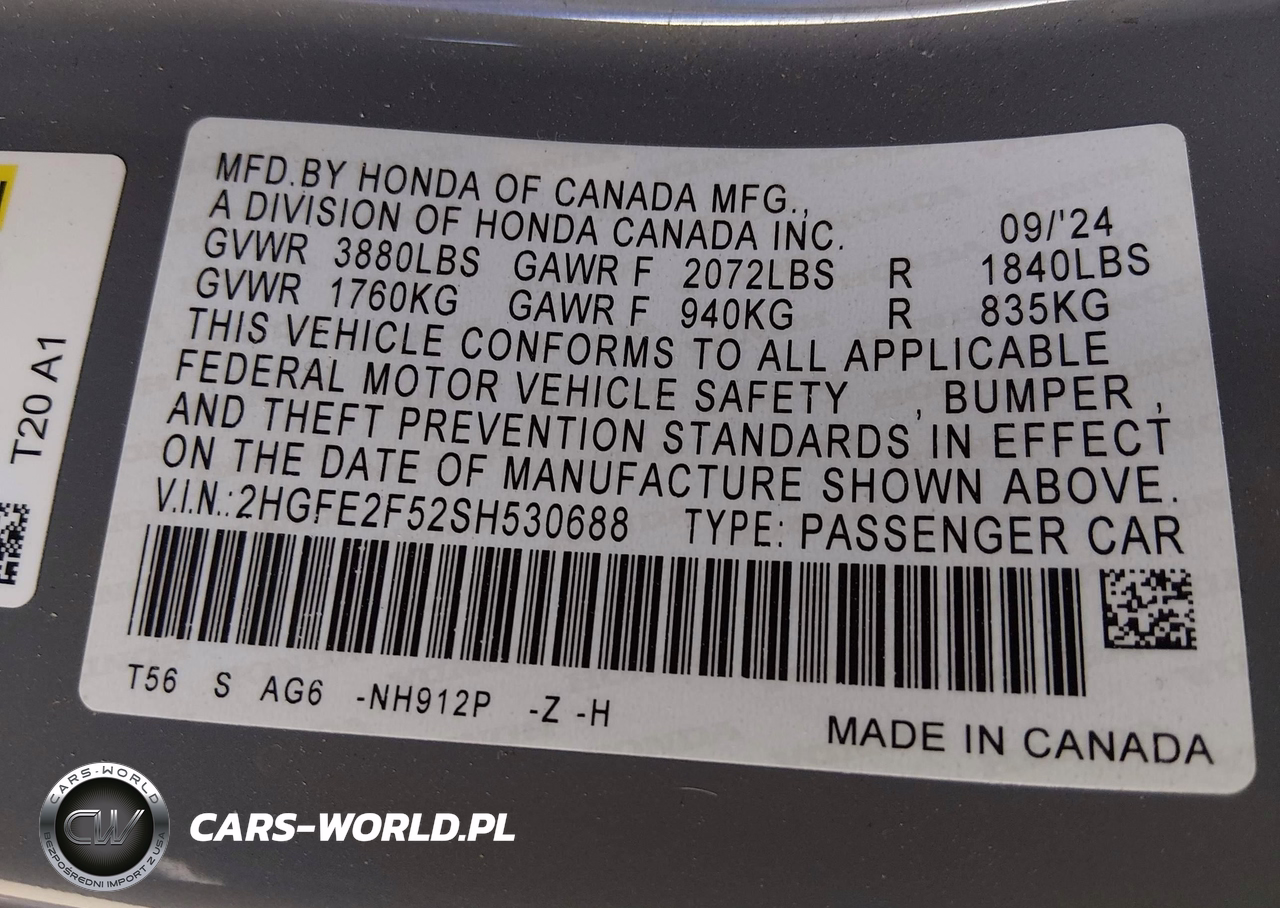 IAAI Nr: I-44698699 VIN: 2HGFE2F52SH530688 Port: Los Angeles, CA