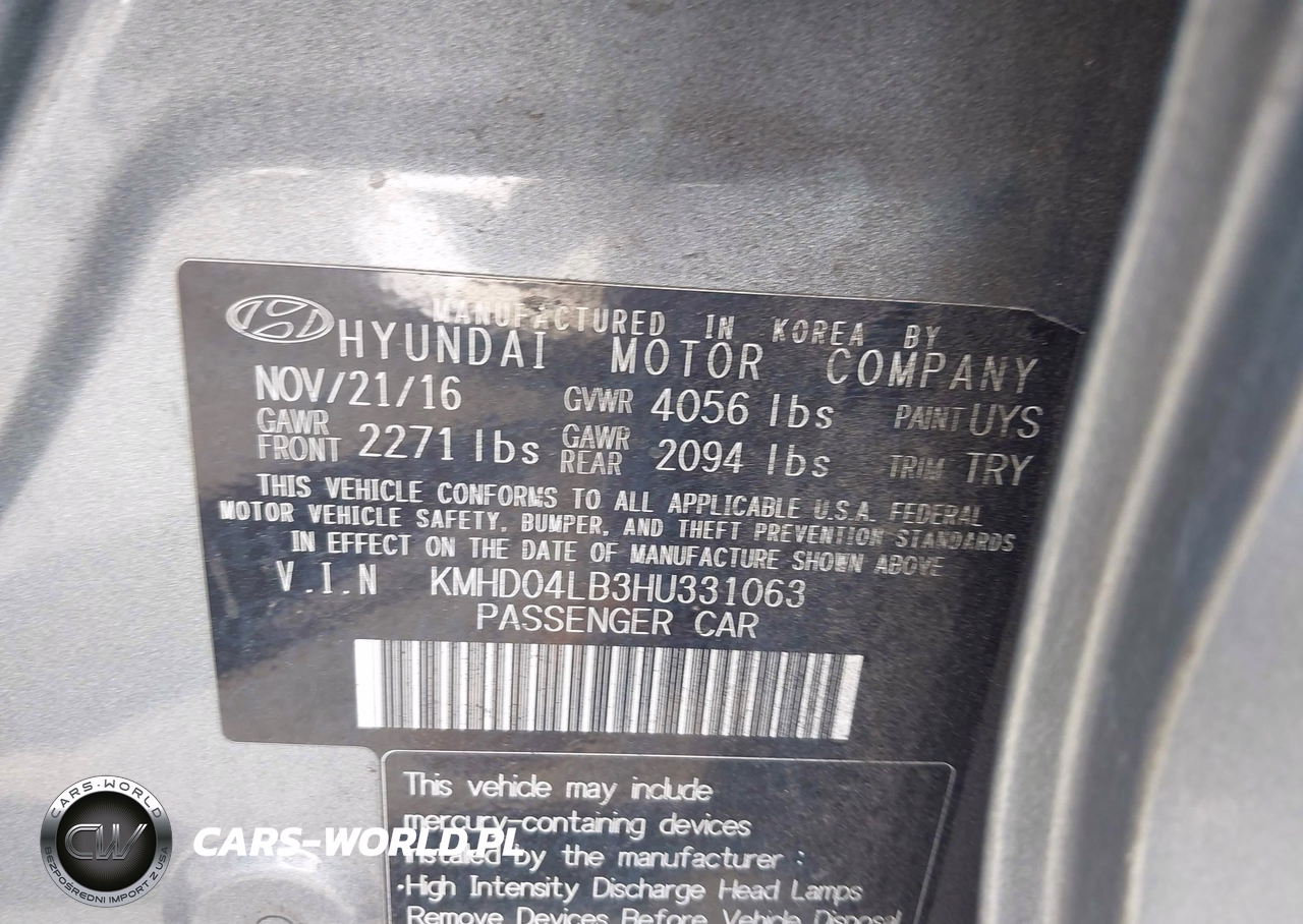 IAAI Nr: I-44699072 VIN: KMHD04LB3HU331063 Port: Los Angeles, CA
