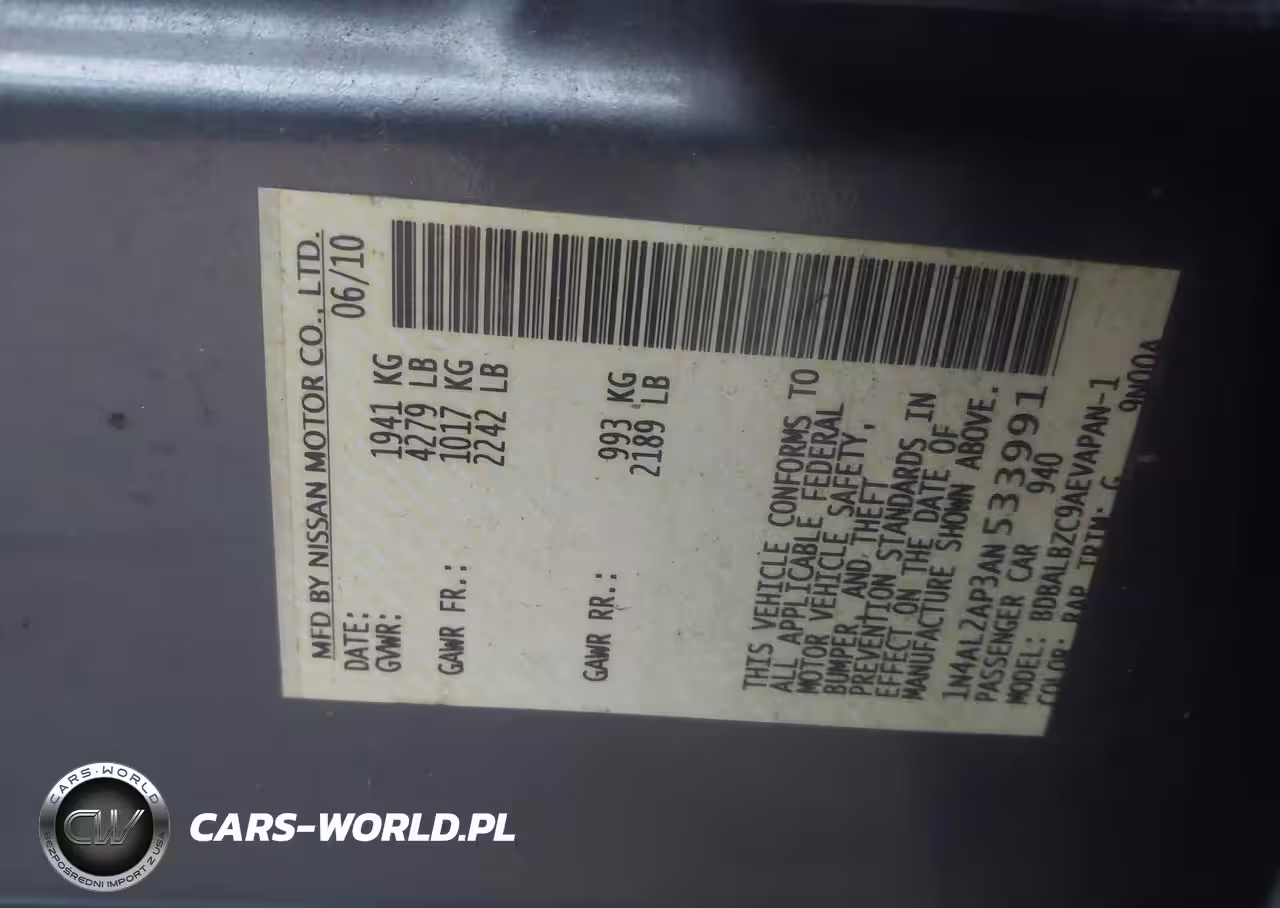 IAAI Nr: I-44700472 VIN: 1N4AL2AP3AN533991 Port: Elizabeth, NJ