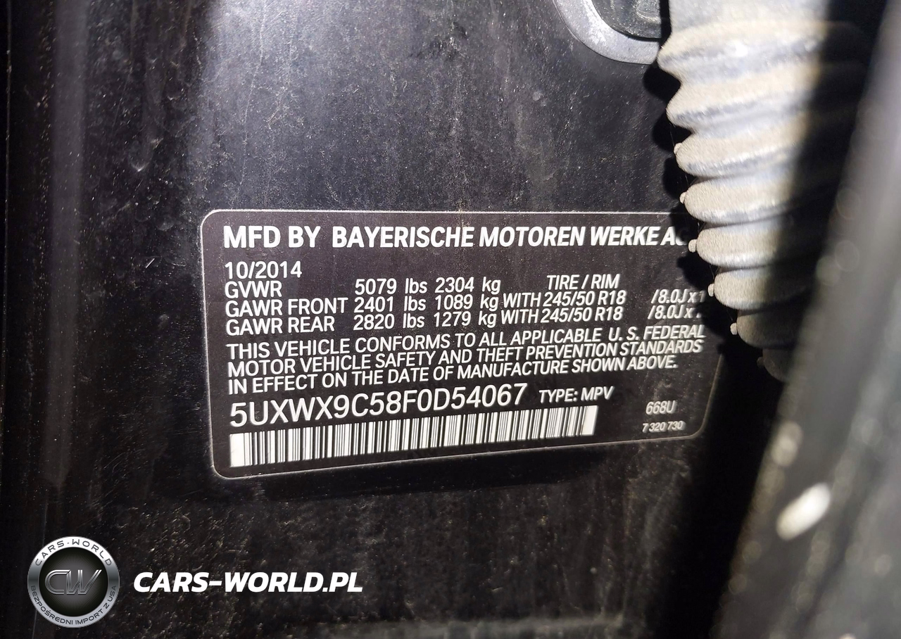 IAAI Nr: I-44701022 VIN: 5UXWX9C58F0D54067 Port: Indianapolis, IN