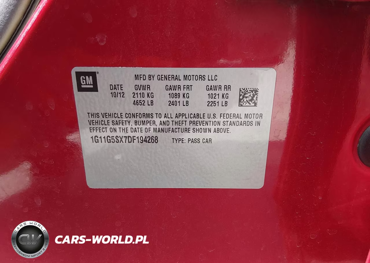 IAAI Nr: I-44701091 VIN: 1G11G5SX7DF194268 Port: Indianapolis, IN
