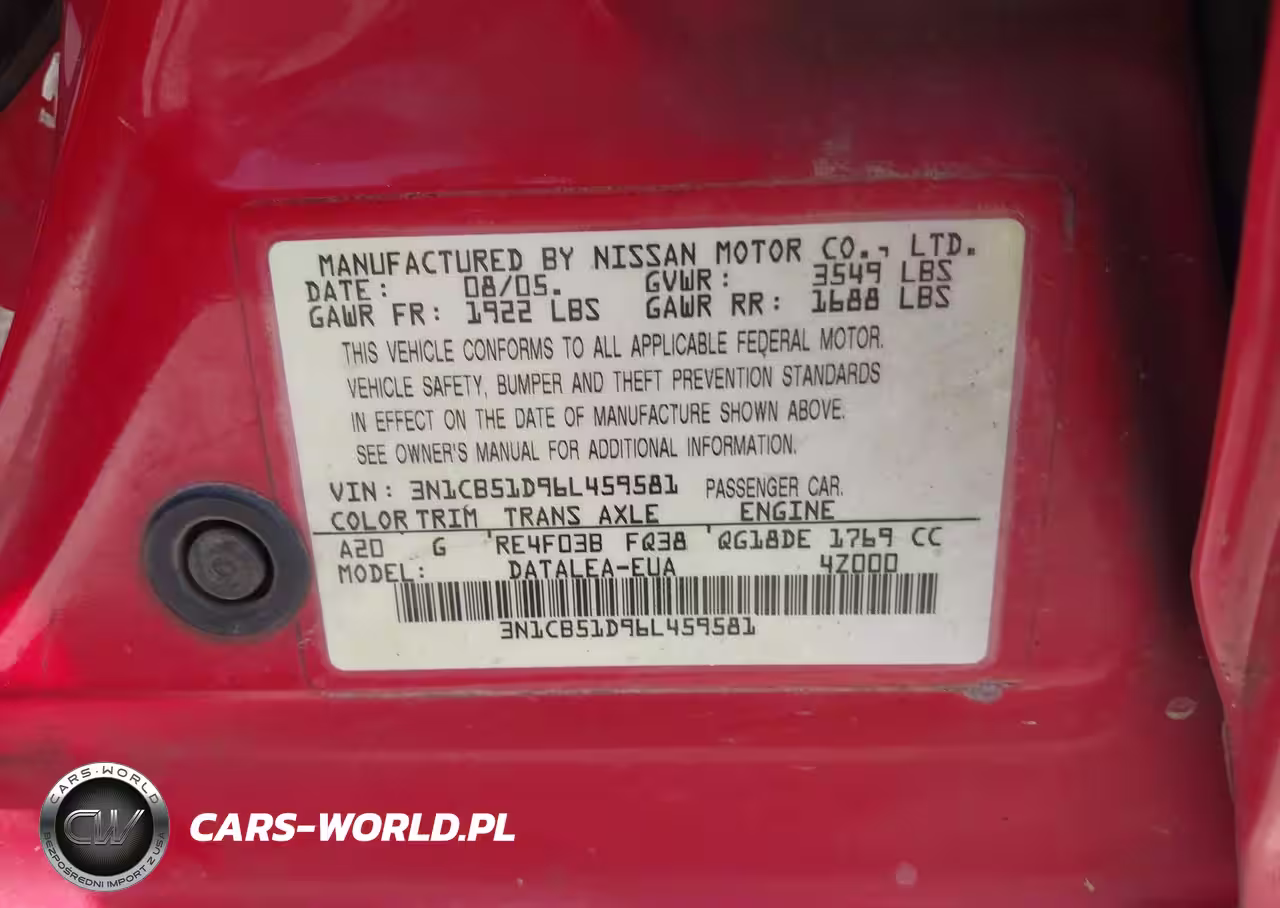 IAAI Nr: I-44701416 VIN: 3N1CB51D96L459581 Port: Savannah, GA