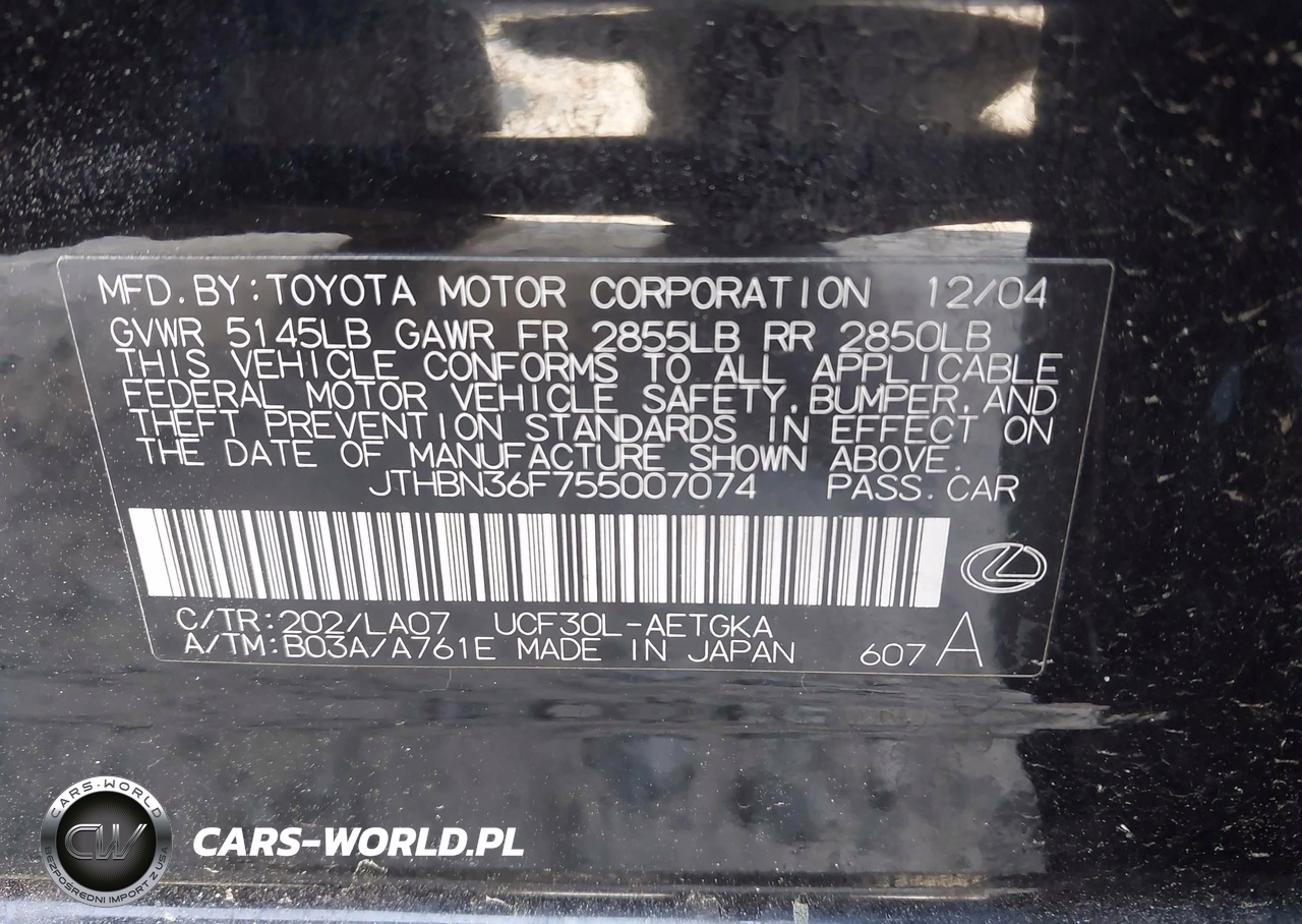 IAAI Nr: I-44701629 VIN: JTHBN36F755007074 Port: Savannah, GA