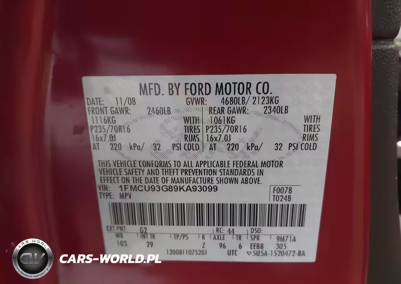 IAAI Nr: I-44701740 VIN: 1FMCU93G89KA93099 Port: Indianapolis, IN