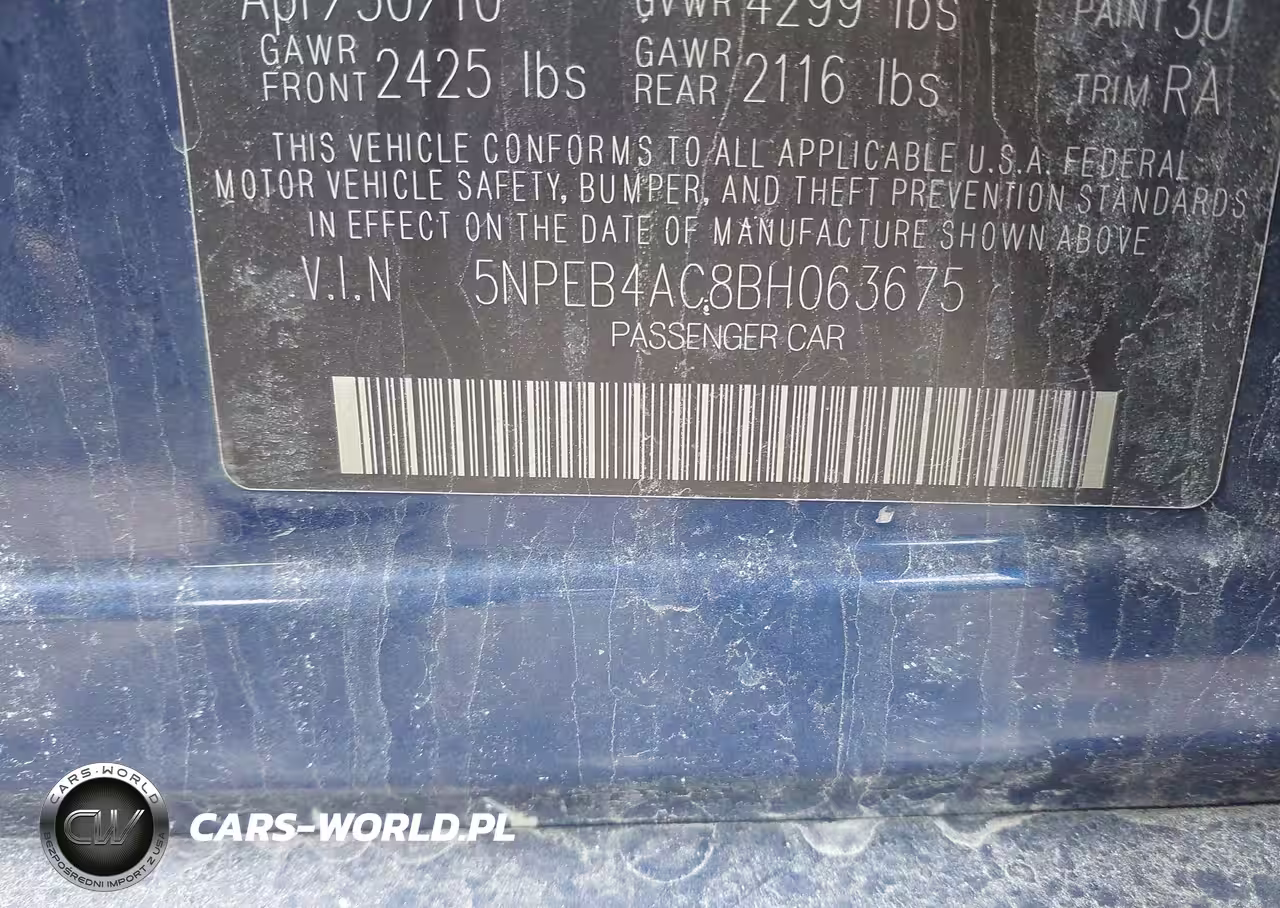 IAAI Nr: I-44701804 VIN: 5NPEB4AC8BH063675 Port: Indianapolis, IN