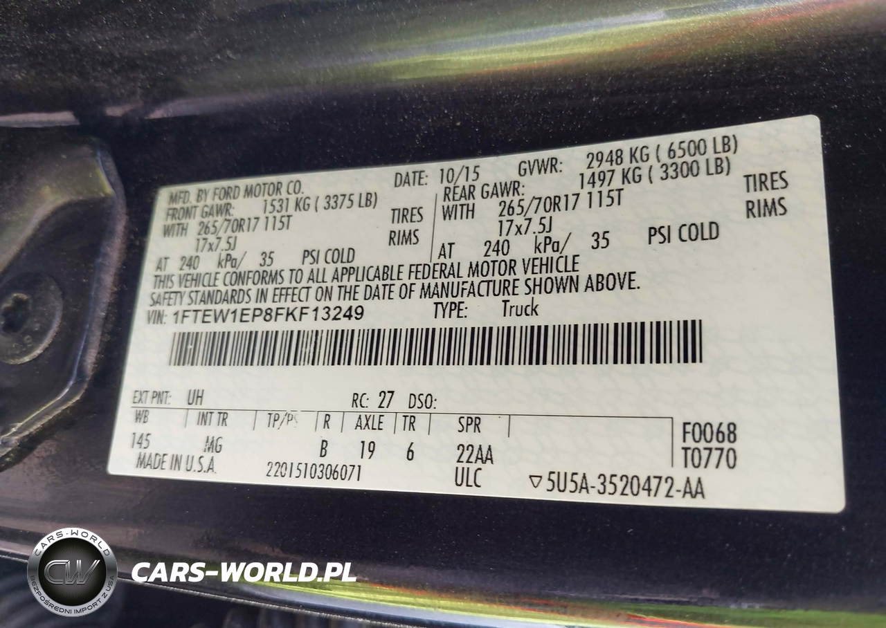 IAAI Nr: I-44702469 VIN: 1FTEW1EP8FKF13249 Port: Elizabeth, NJ